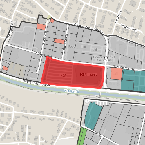 Die Entwicklung des Gewerbegebietes Kaarst-Ost war in der Vergangenheit maßgeblich geprägt durch das seit 1979 eröffnete IKEA Möbelhaus. Der innerörtliche Umzug des Unternehmens im Jahre 2017 in das Gewerbegebiet Kaarster Kreuz hat an alter Stätte ein bedeutendes Flächenpotential geschaffen, dessen Entwicklungsperspektiven deutliche Chancen für das gesamte Gewerbegebiet bieten.